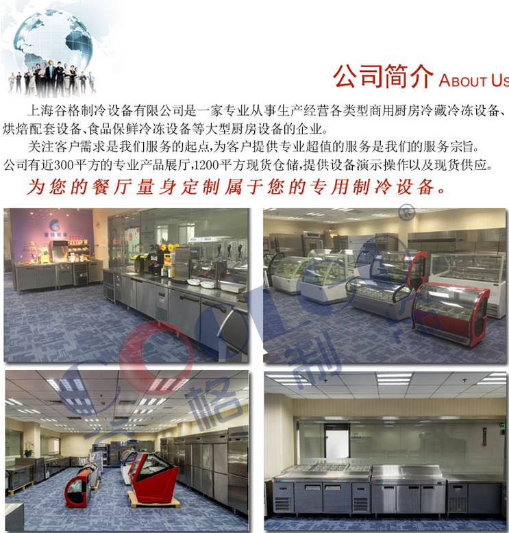 上海谷格制冷設(shè)備工程有限公司是一家商用冰箱、制冷配件、裝配式冷庫(kù)等工程的設(shè)計(jì)、銷售、安裝、維修和技術(shù)咨詢一條龍服務(wù)的制冷企業(yè)。我公司以裝配式冷庫(kù)的生產(chǎn)和定制為主。