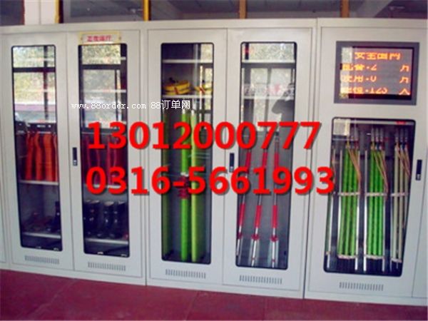 2、柜體表面為靜電防腐噴塑工藝,顏色為駝灰皺,柜門裝有通體透明有機玻璃,通過玻璃門可以看到分類有序的各種工器具。